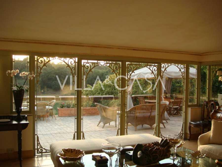 Roma'nın kuzeyinde, Due Ponti / Corso Francia bölgesinde, Parco di Roma 18 delikli golf kulübünün yanında bulunan en prestijli ve güvenlikli konut komplekslerinden birinde, yaklaşık 700 m² alana sahip, teraslar ve özel dış mekanlarla beş seviyede yer alan istisnai bir tarihi villa kiralık olarak sunulmaktadır.