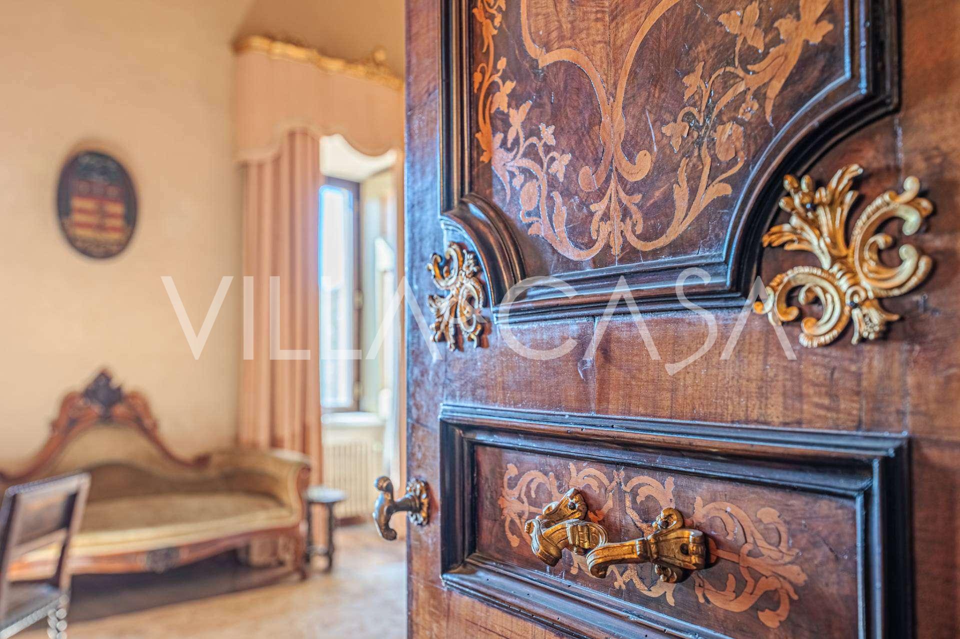 Birinci katta geniş resepsiyon salonları, bir çalışma odası, bir yatak odası, üç banyo, zarif bir yemek odası ve alt seviyeye devam eden büyük bir mutfak bulunmaktadır; burada resmi etkinlikler için ideal bir ziyafet salonu yer alır.