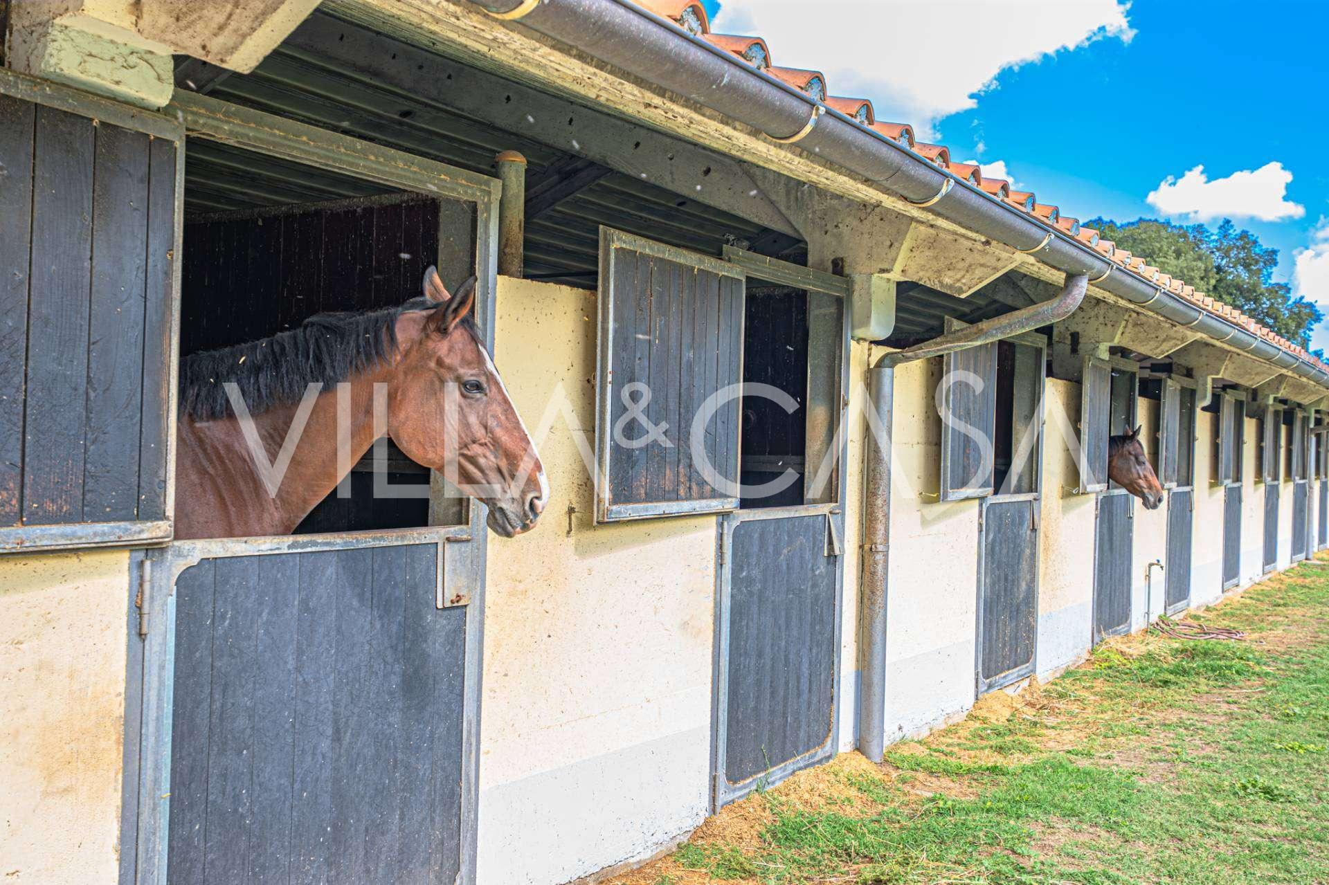 Roma'nın sadece yirmi kilometre kuzeyinde yer alan kale, otuz hektarlık bakımlı çayırlar ve antik ormanlarla çevrilidir ve bu da tam bir inziva ve doğayla uyum atmosferi yaratır. Efsanevi yarış atı Ribot burada doğmuştur. Binicilik tesisleri en iyi uluslararası standartlara göre donatılmıştır: Yirmi üç ve yirmi beş ahır kapasiteli iki ahır, eyer odaları, at bakım alanları ve personel için konforlu dairelerle donatılmıştır. Kompleksin içinde kapalı bir binicilik arenası, kapalı bir atlıkarınca, kapalı bir manej ve at yetiştirmek için geniş meralar bulunmaktadır ve bunlar antrenman ve yarışmalar için idealdir. Kale, Avrupa'nın en prestijli golf kulüplerinden birine bitişiktir ve kendi helikopter pistine sahiptir. Arazide bulunan antik Etrüsk mağaraları, mekana özel bir cazibe ve tarihi değer katmaktadır.