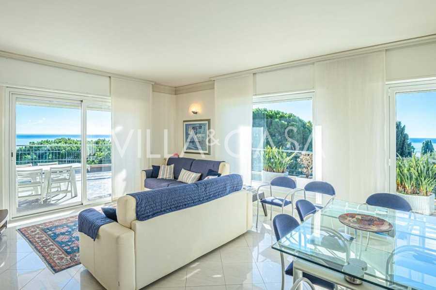 Sanremo'da, sahile sadece 10 dakikalık yürüme mesafesinde, yaklaşık 146 m² büyüklüğünde bir penthouse satılıktır. Daire, asansörlü bir binanın 5. katında yer almakta olup şunları içermektedir: