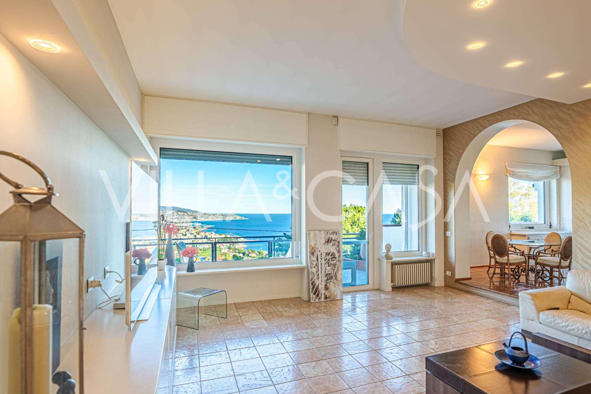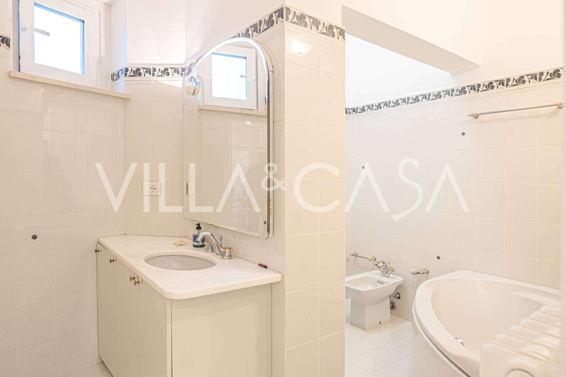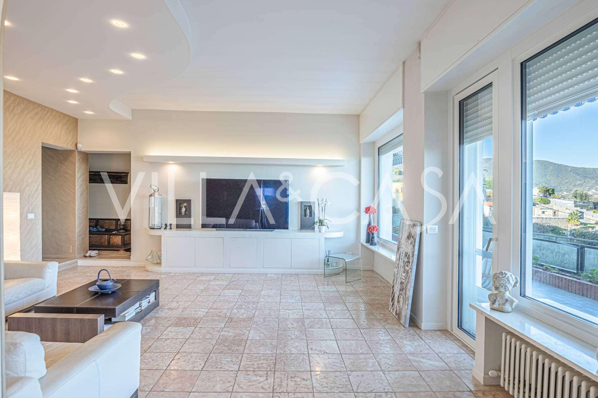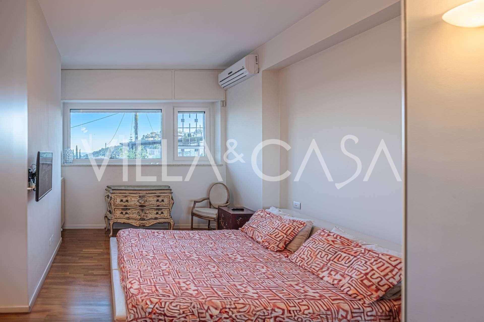 Deniz manzaralı 161 m²'lik lüks bir daire satışa sunulmuştur. Daire, yüzme havuzu ve rahat bir otopark alanı bulunan şık bir özel villanın alt katında yer almaktadır.