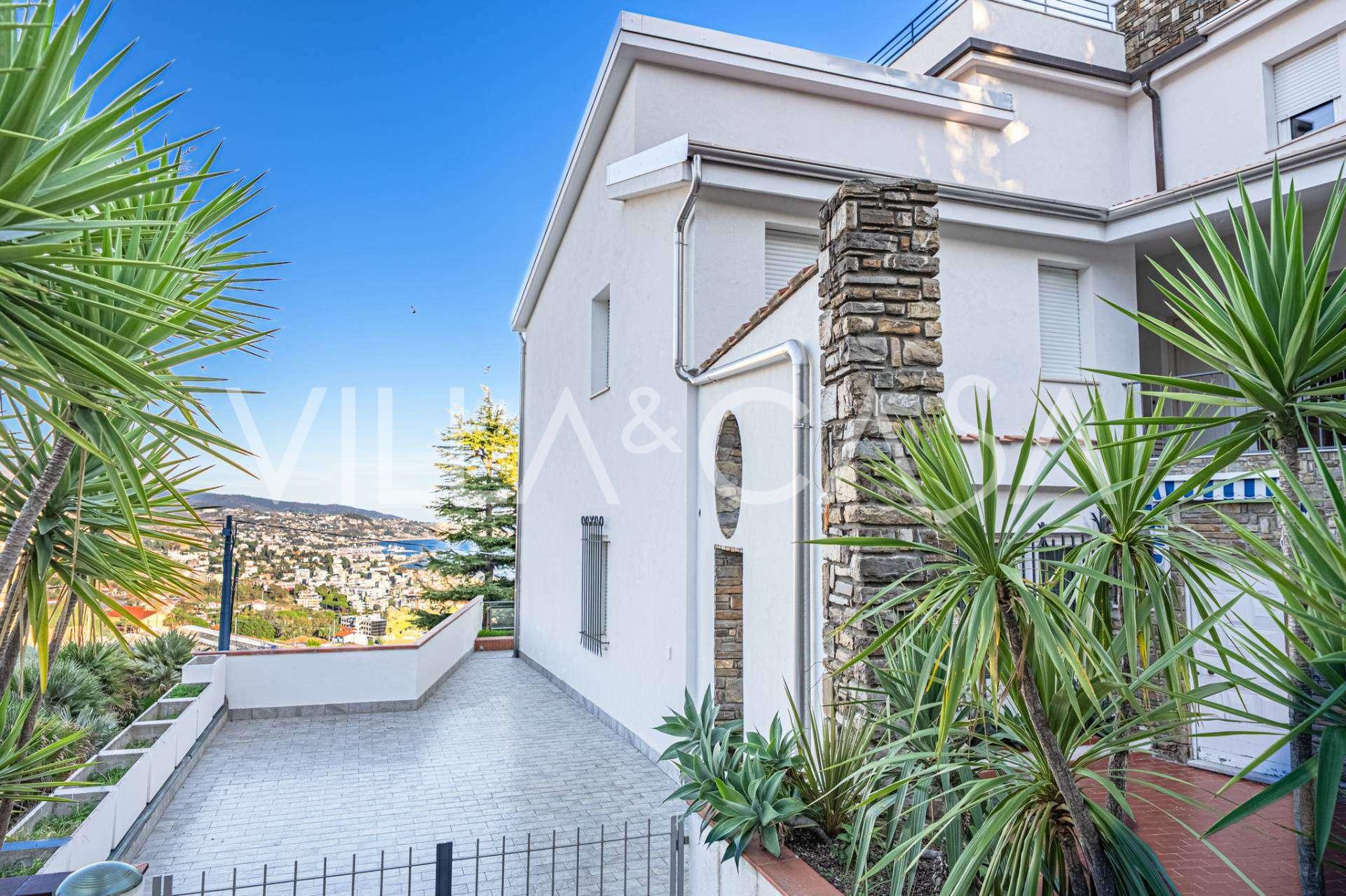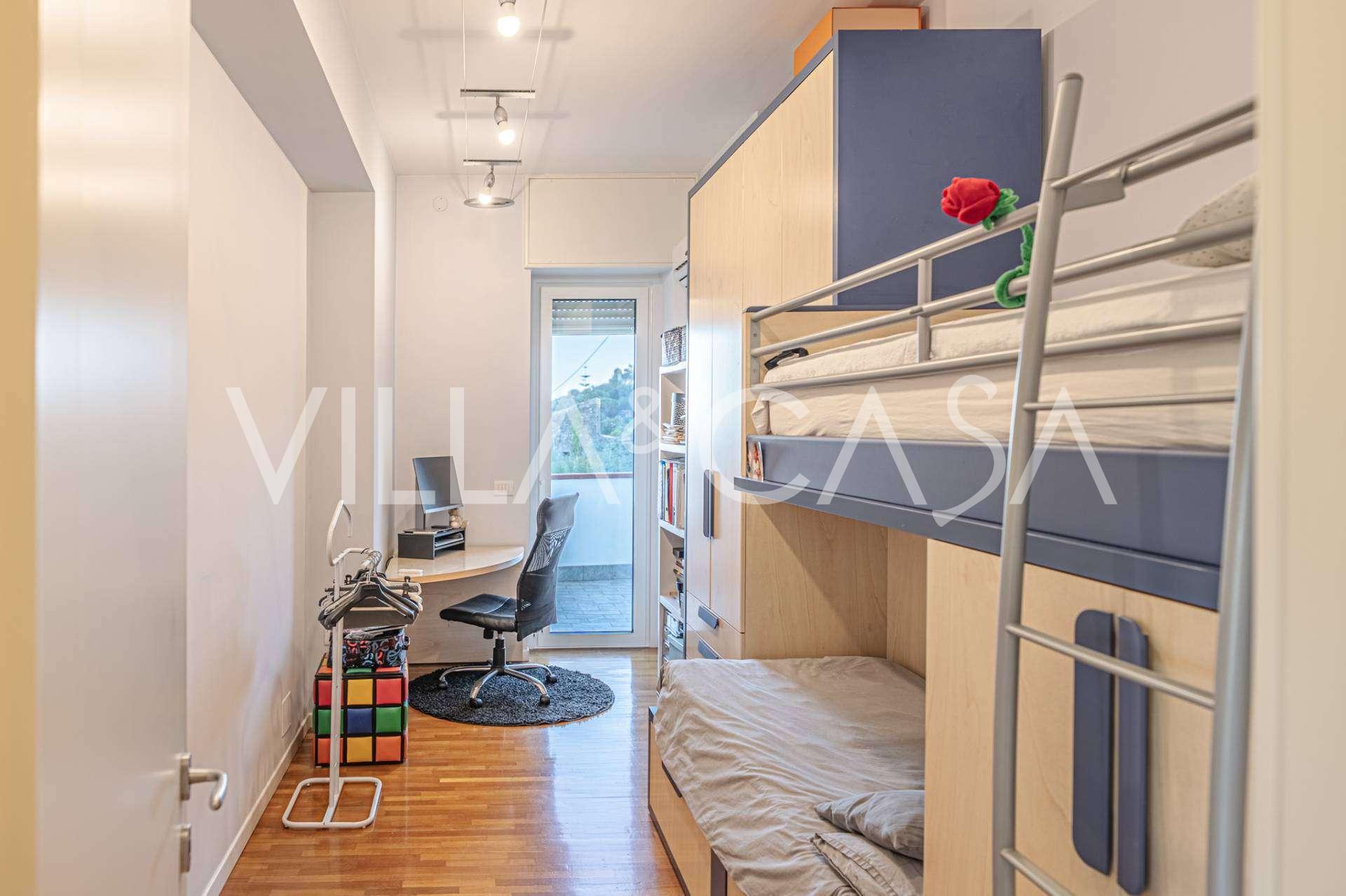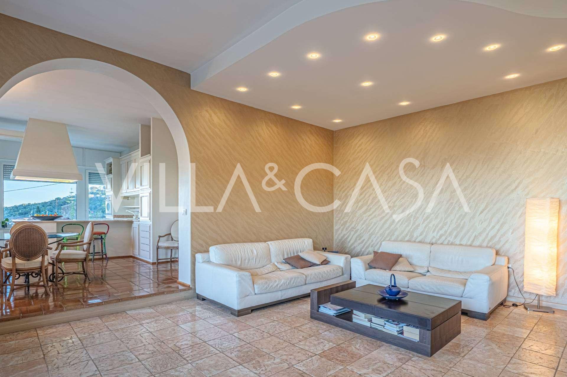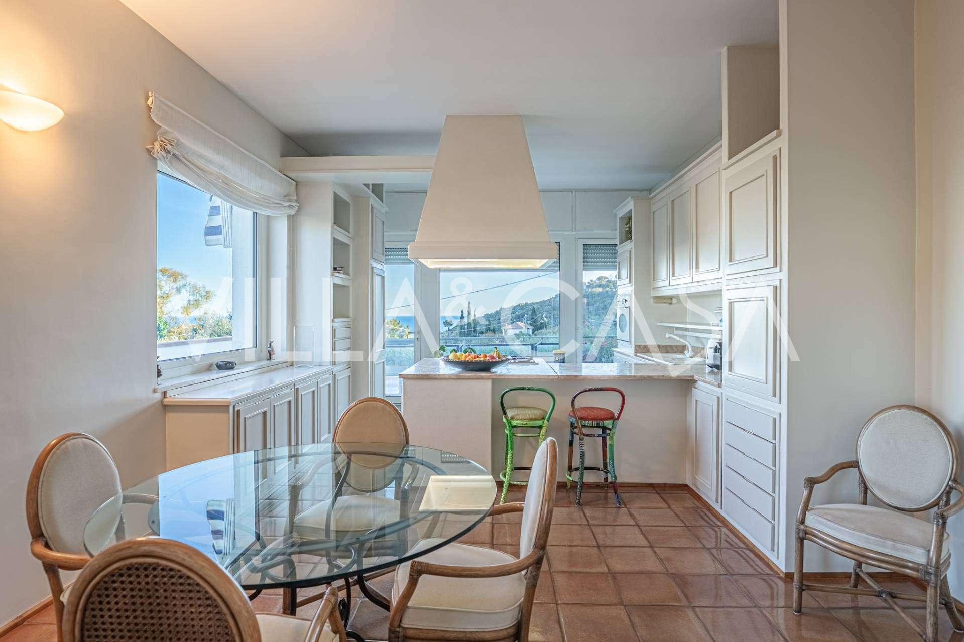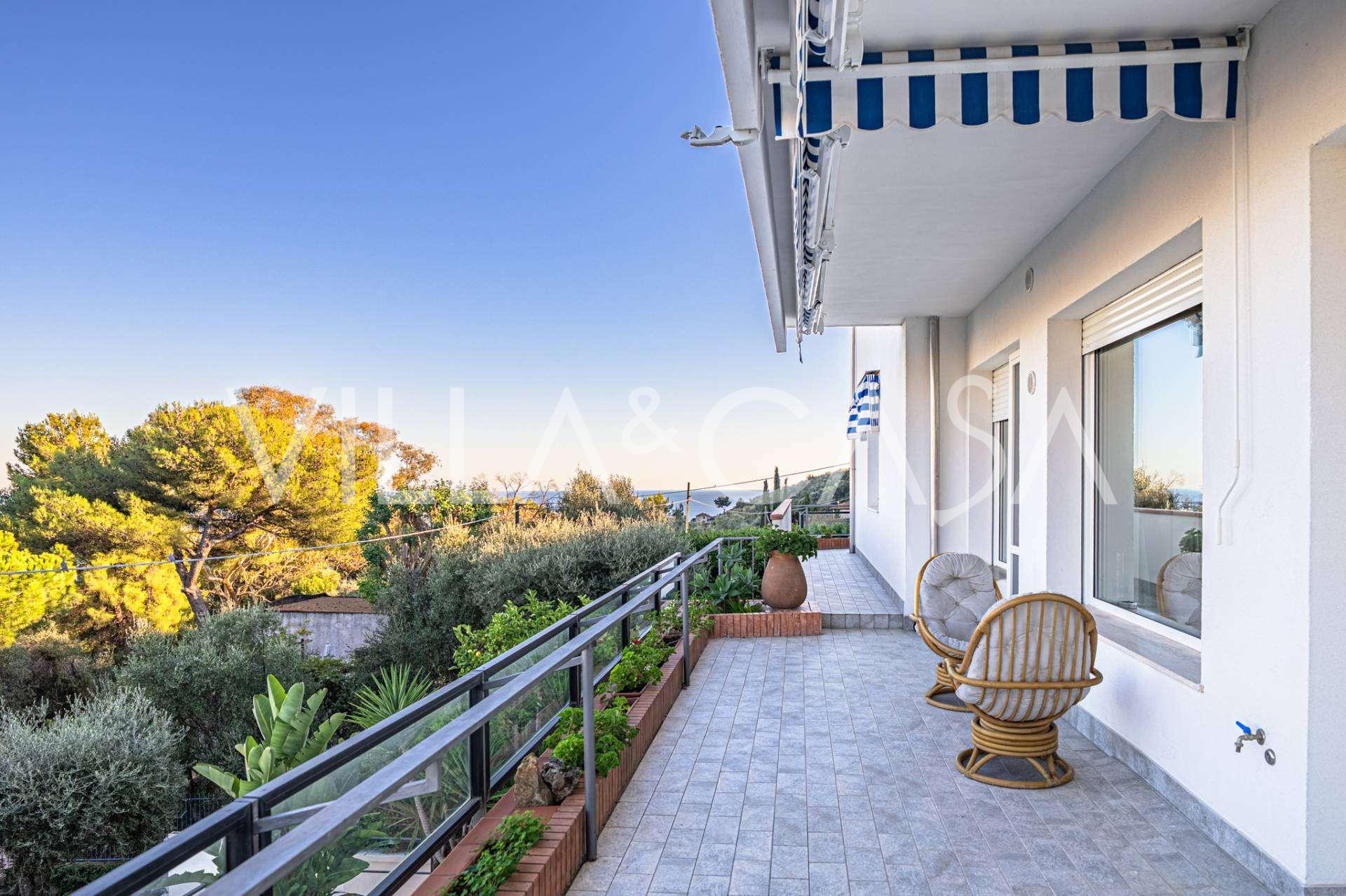 Deniz manzaralı 161 m²'lik lüks bir daire satışa sunulmuştur. Daire, yüzme havuzu ve rahat bir otopark alanı bulunan şık bir özel villanın alt katında yer almaktadır.