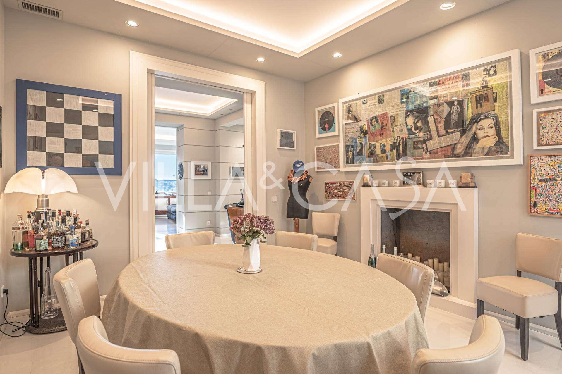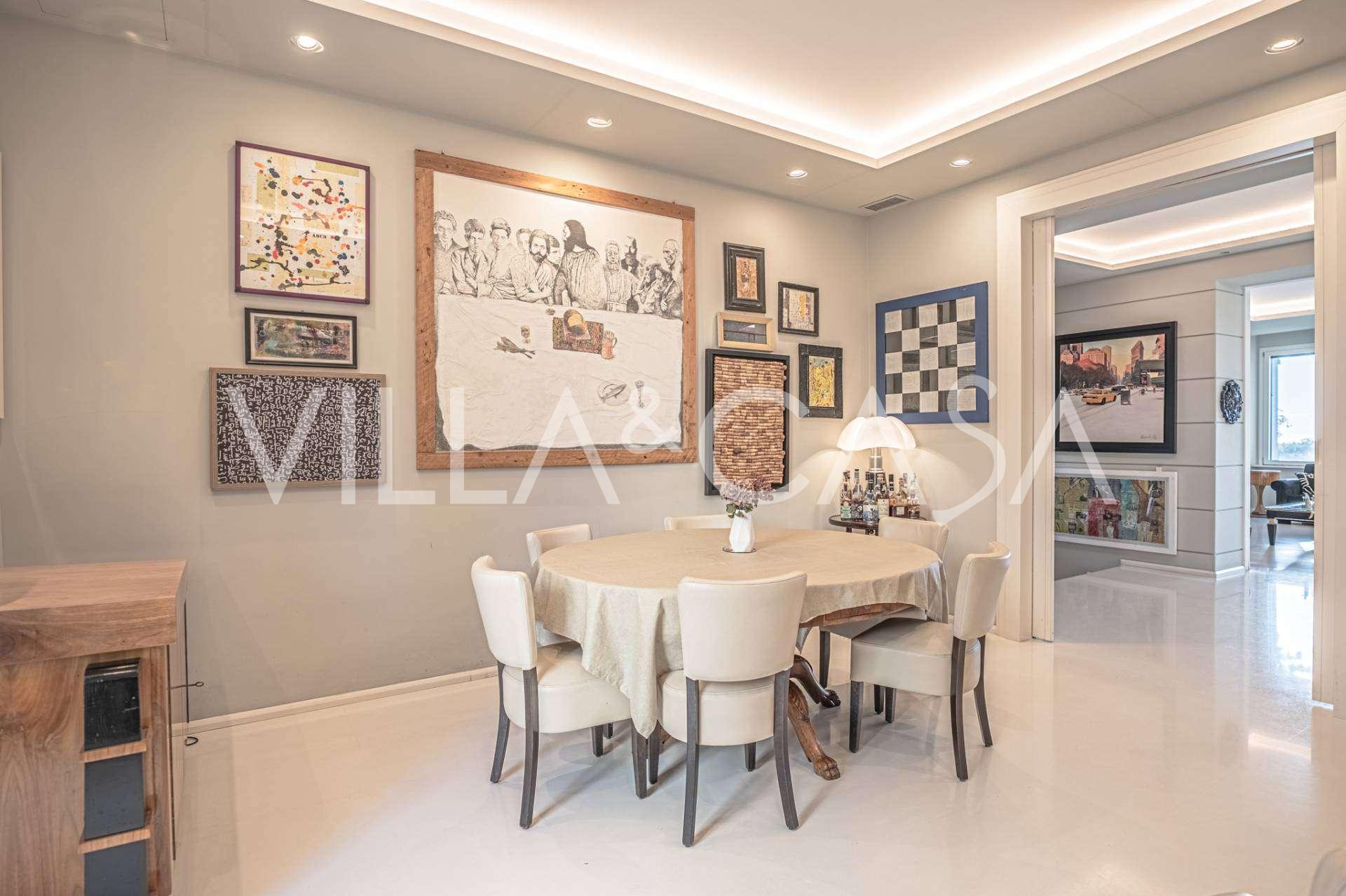 Birinci katta, dijital zırhlı bir kapı, misafir ağırlamak için mükemmel olan zarif bir açık plan oturma odasına açılır. Modern, tam donanımlı mutfak, büyüleyici özel bir iç bahçeye açılan resmi yemek odası ile bağlantılıdır: dinlenmek veya özel etkinlikler düzenlemek için mükemmel bir huzur ve mahremiyet vahası. Şık bir misafir banyosu bu katı tamamlar.