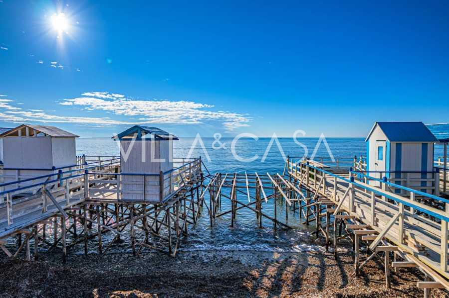 Tiren Denizi'nin masmavi kıyılarına sadece yüz metre mesafede, prestijli tatil beldesi Santa Marinella'da, zarif İtalyan deniz stilini yansıtan 153 m2'lik muhteşem bir villa bulunmaktadır. Bu zarif konut, deniz manzaralı olup, iki seviyede yer almakta ve deniz kenarında huzurlu bir tatil atmosferiyle sıcaklık ve konforu mükemmel bir şekilde birleştirmektedir.
