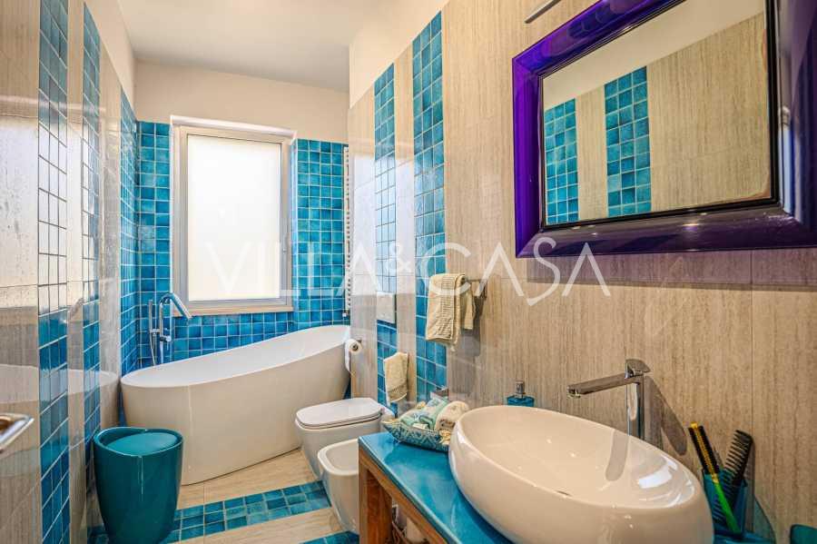 Yaklaşık 700 metrekarelik özel bir bahçe, villayı doğal bir zarafetle çevrelemekte ve deniz seviyesindeki terasa, villanın ve Tiren Denizi'nin sınırının gizlendiği tenha ve manzaralı bir yere götürmektedir. Bu alanda ayrıca, deniz manzaralı bir dinlenme alanı veya gözlem noktası için mükemmel olan, üstünde teras bulunan ek bir oda bulunmaktadır.