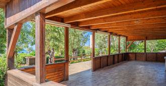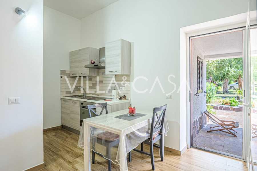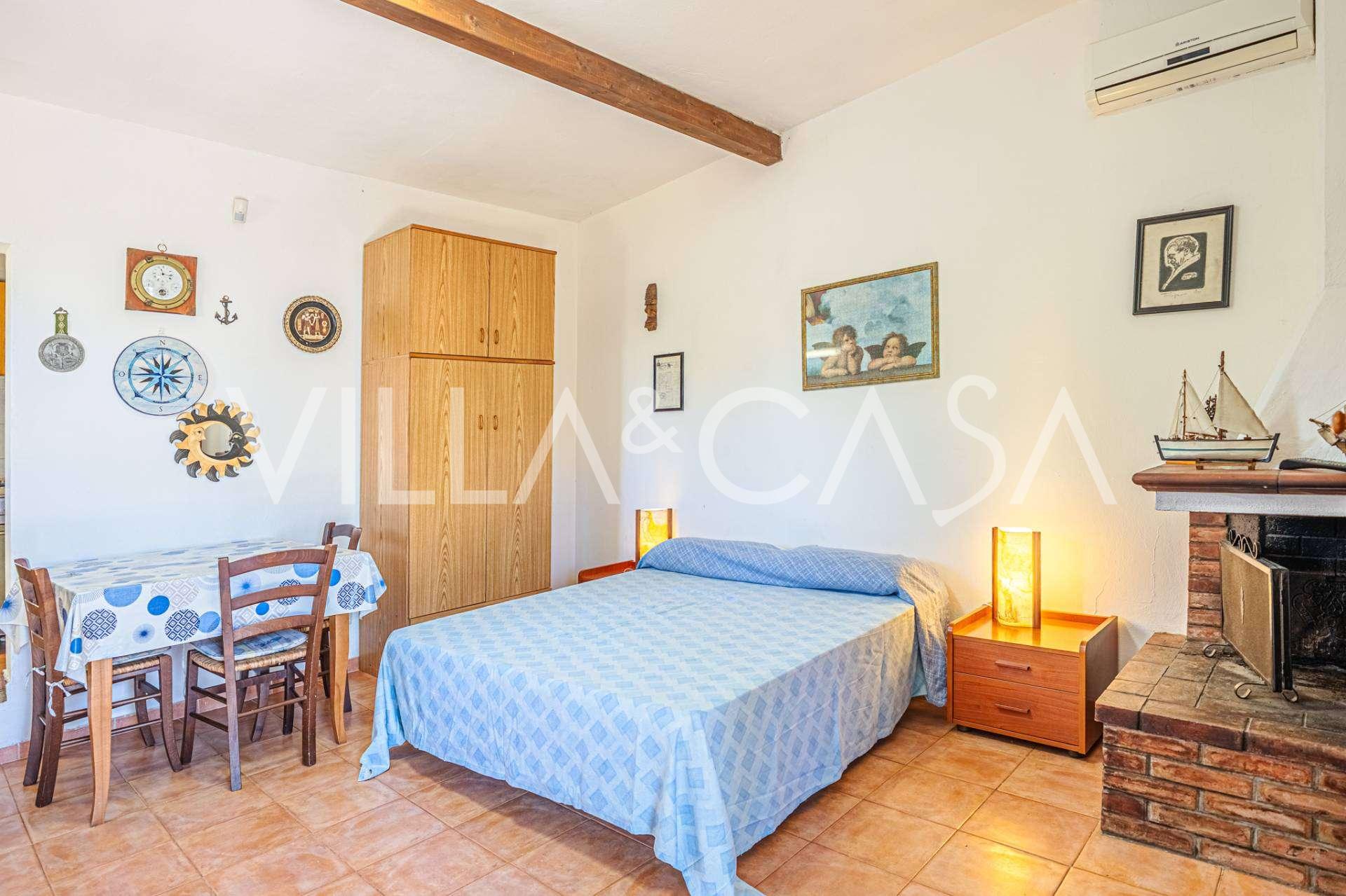Rezidansı tamamlayan yardımcı yapılar: banyo, mini mutfak, odun sobası, çamaşırhane ve depo içeren ayrı bir bina ve kendi yatak odası, banyosu ve mini mutfağı olan yaklaşık 24 metrekarelik bağımsız bir daire. Yaklaşık 100 metrekarelik deniz manzaralı ahşap bir çardakla süslenmiştir. Daire, mahremiyeti ve mükemmel güneşlenme imkanı ile dikkat çeker, otomatik kapılı iki girişe sahip olup, kusursuz durumdadır, tamamen mobilyalı ve klima ve fotovoltaik sistemle donatılmıştır.
