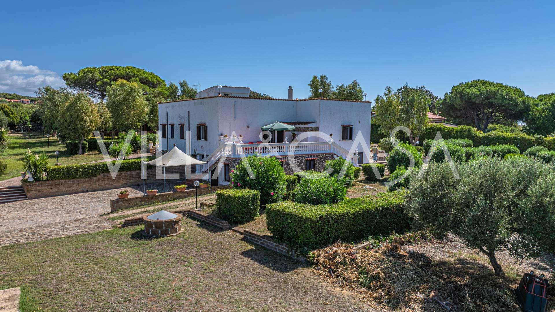 Santa Marinella kıyısının kalbinde, denize sadece birkaç adım mesafede, yaklaşık 560 metrekarelik toplam alana sahip bağımsız bir villa bulunmaktadır. Bu zarif konut, yaklaşık 6.000 metrekarelik özel bir parkla çevrili olup, denizin nefes kesici panoramik manzaralarını sunmaktadır.