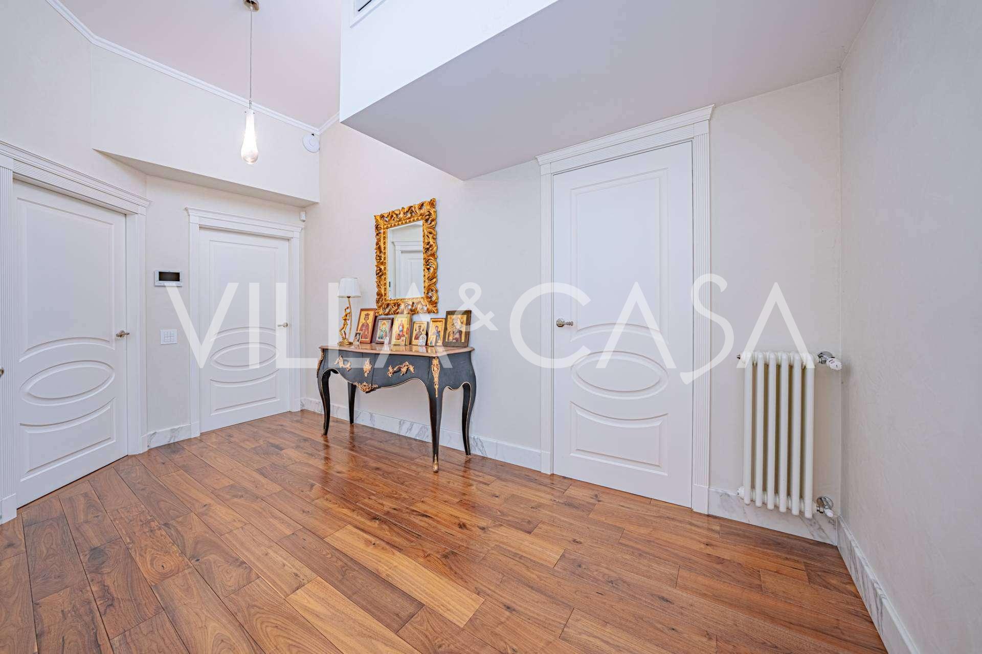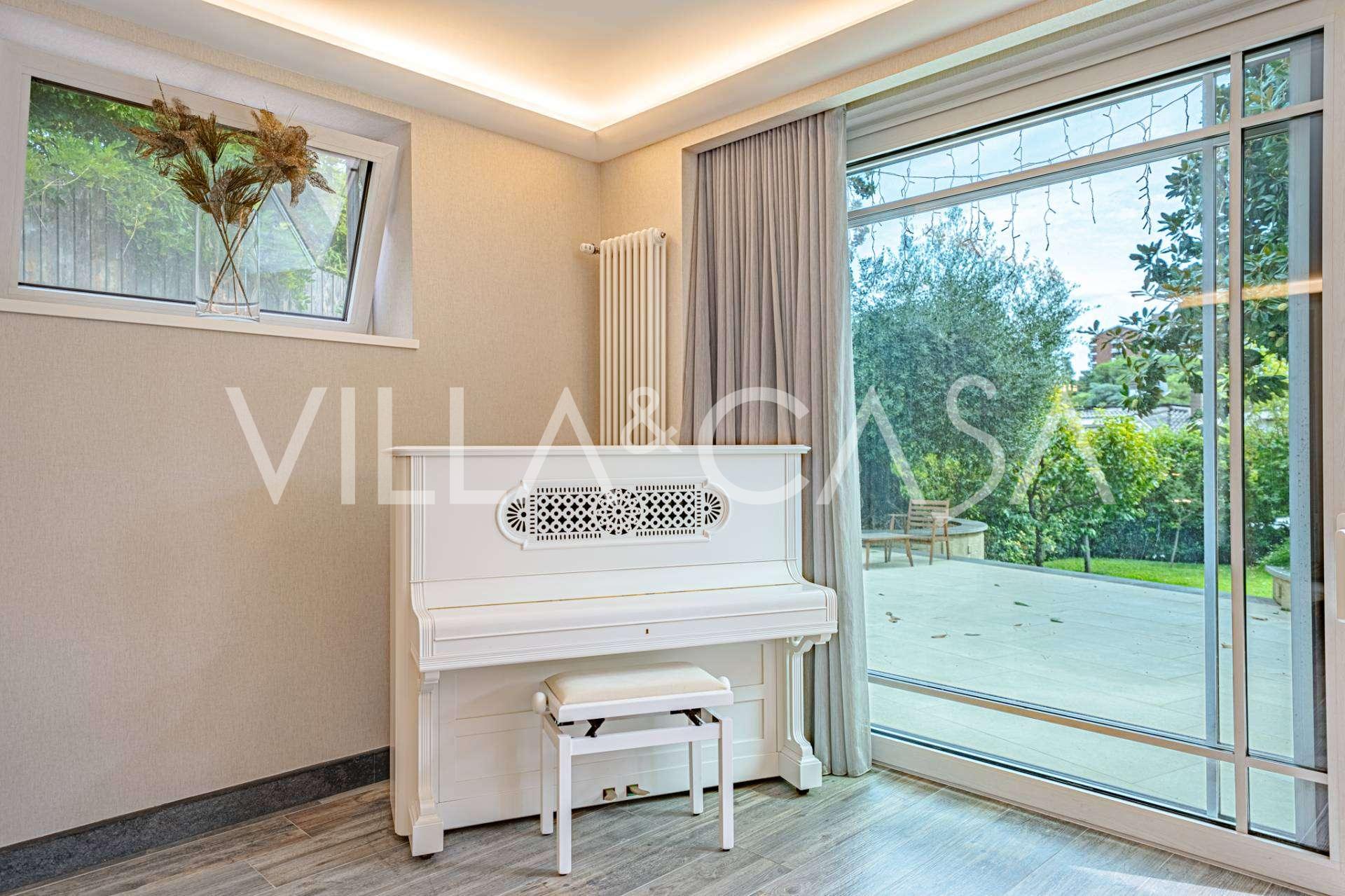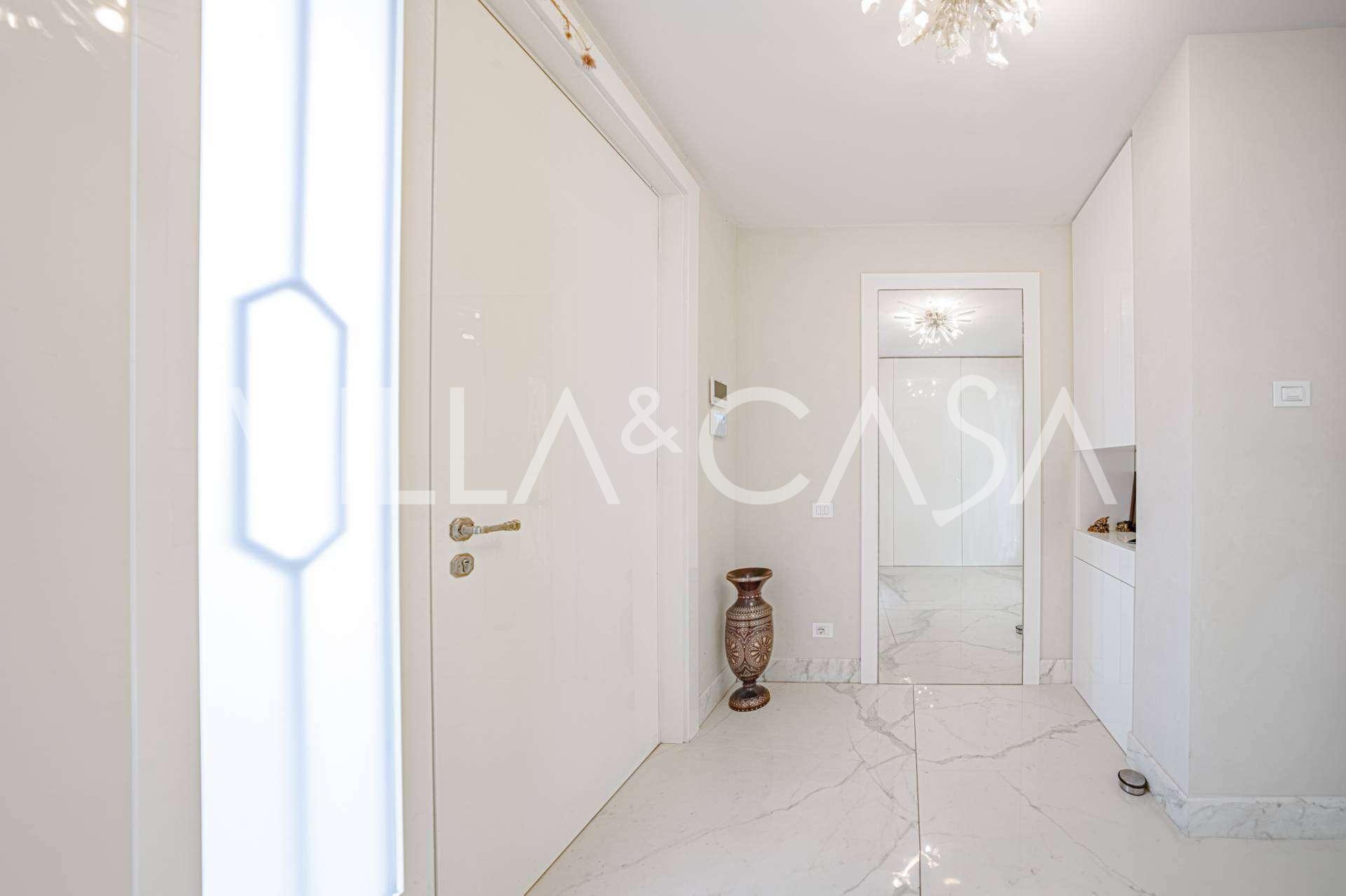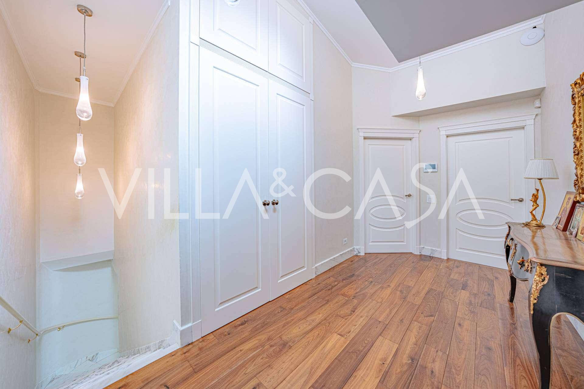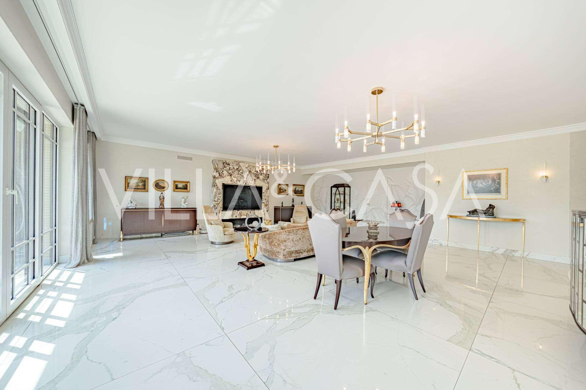 Üç katlı konut, Via Marocco'da güney güneşine bakan bir konumda yer almakta, yeşilliklerle çevrili olup bahçelere nefes kesici manzaralar sunmaktadır. Tarihi tarz, yenilikçi teknolojiler ve iç mekanın özenle düşünülmüş ergonomisi ile uyumlu bir şekilde birleşmektedir.
