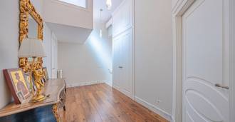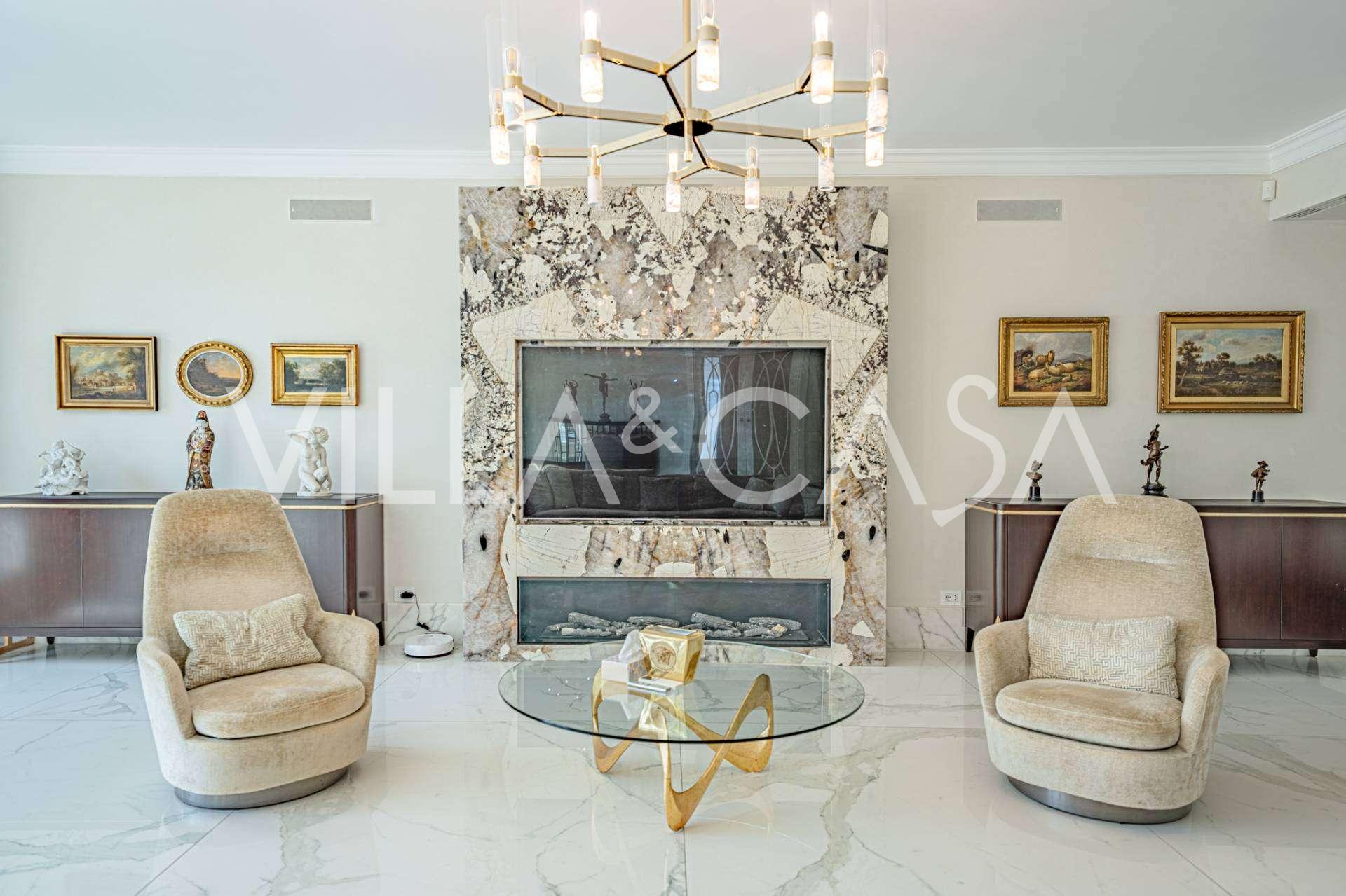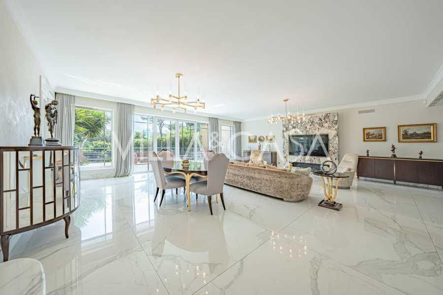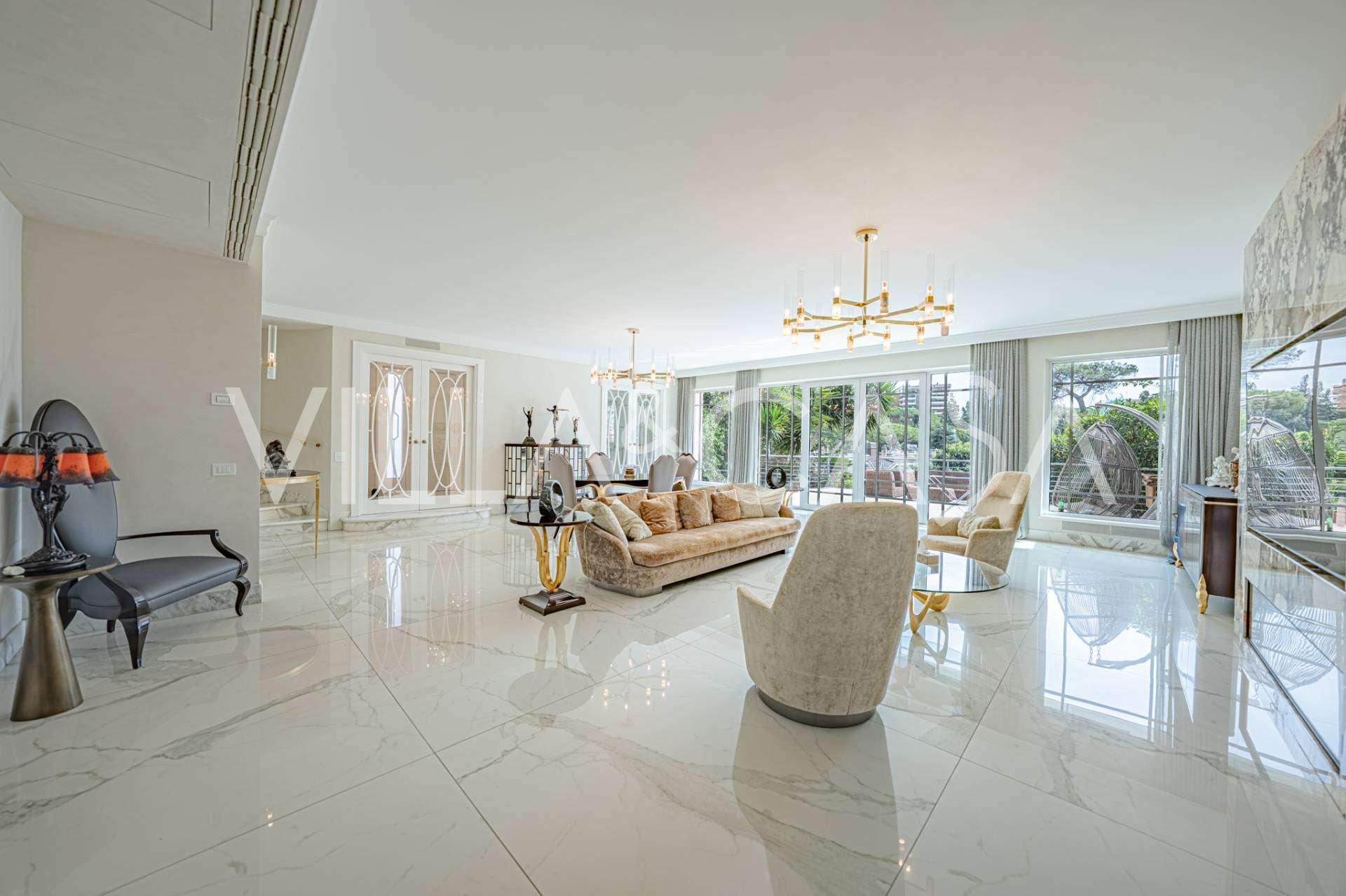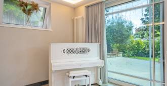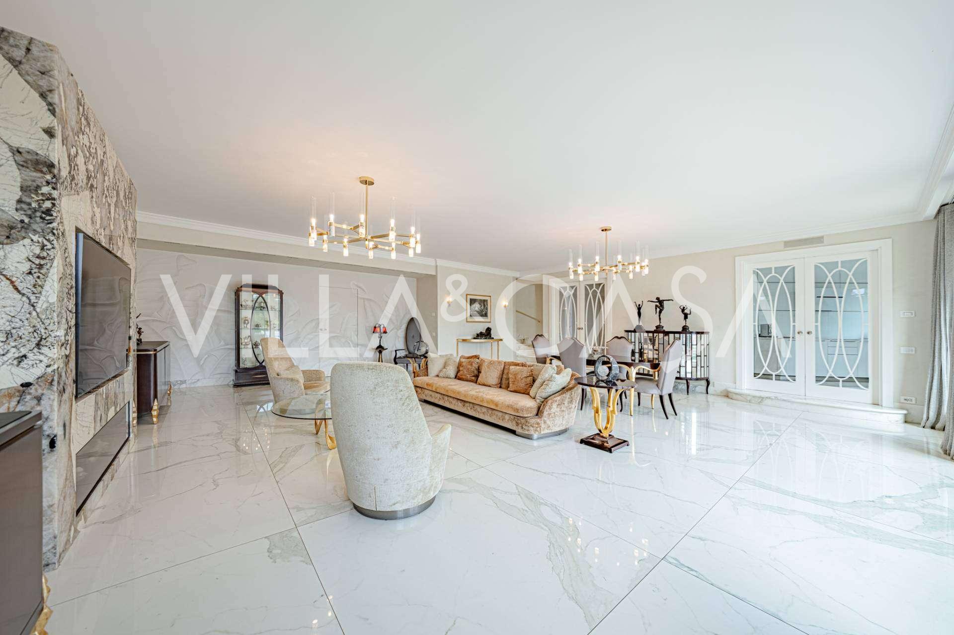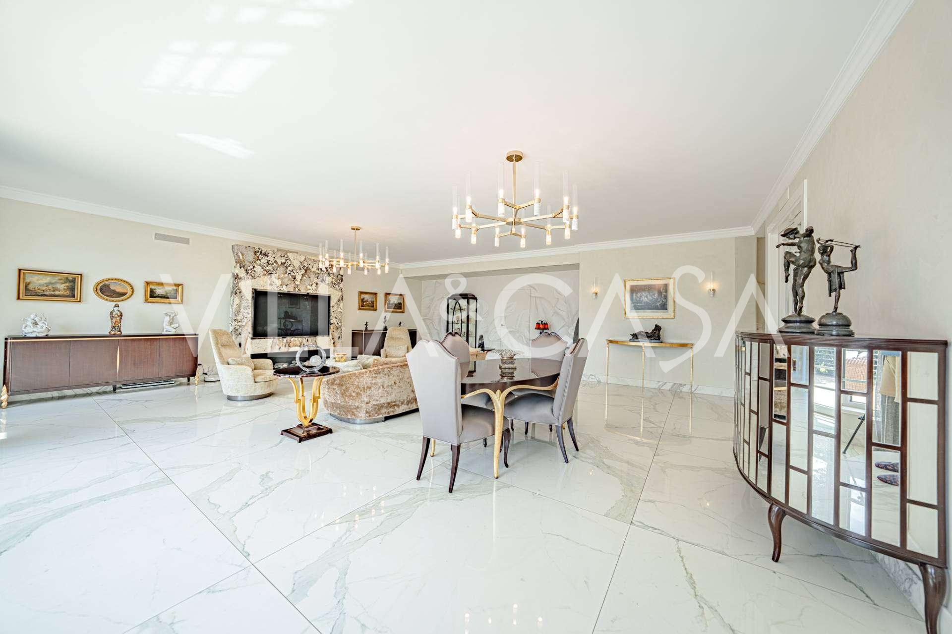 Üç katlı konut, Via Marocco'da güney güneşine bakan bir konumda yer almakta, yeşilliklerle çevrili olup bahçelere nefes kesici manzaralar sunmaktadır. Tarihi tarz, yenilikçi teknolojiler ve iç mekanın özenle düşünülmüş ergonomisi ile uyumlu bir şekilde birleşmektedir.