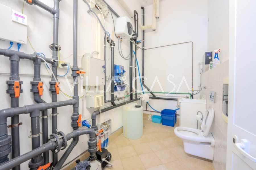 Bağımsız ısıtma sistemi. 4 araçlık büyük bir garaj, donanımlı bir spor salonu. Arazide yaz mutfağı, barbekü alanı, bahçe ve araçlar için park yerleri bulunan bir yüzme havuzu bulunmaktadır. Ayrıca arazide başka bir kapalı dinlenme alanı düzenlenebilir. Arazinin toplam alanı yaklaşık 2000 m2'dir.