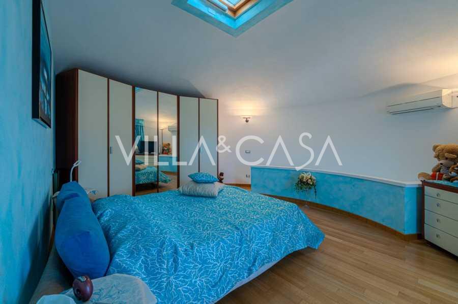 İkinci kat: deniz manzaralı yatak odası ve banyo.