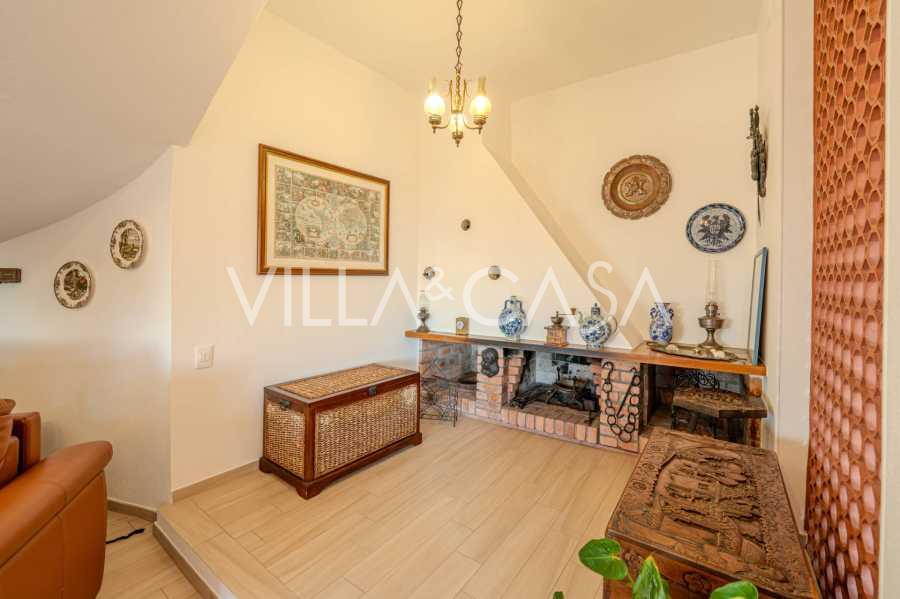 İkinci katta: deniz manzaralı ve şömineli büyük bir oturma odası, buradan bahçeye ve balkona çıkış bulunmaktadır. Mutfak da deniz manzaralıdır. Banyo.