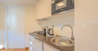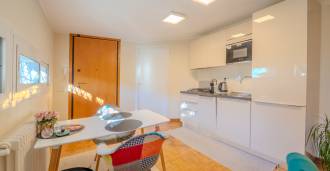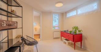 Birinci katta, ayrı bir daire bulunmaktadır: vestiyerli bir antre, mutfaklı bir oturma odası ve banyo.