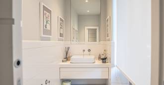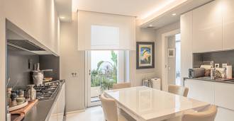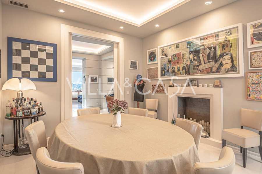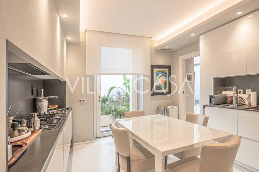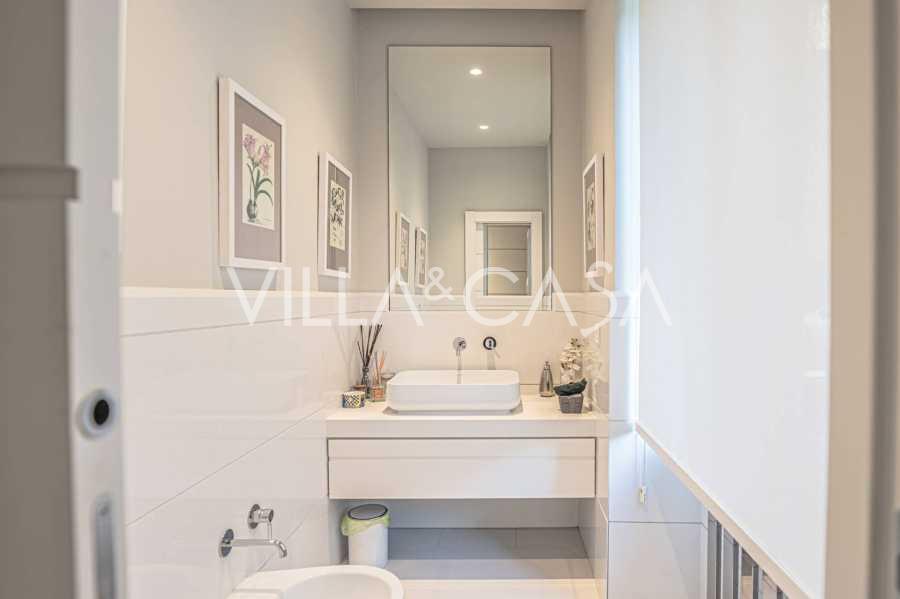 Birinci katta, dijital zırhlı bir kapı, misafir ağırlamak için mükemmel olan zarif bir açık plan oturma odasına açılır. Modern, tam donanımlı mutfak, büyüleyici özel bir iç bahçeye açılan resmi yemek odası ile bağlantılıdır: dinlenmek veya özel etkinlikler düzenlemek için mükemmel bir huzur ve mahremiyet vahası. Şık bir misafir banyosu bu katı tamamlar.