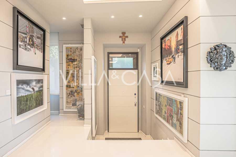 İç mekan, en yüksek kalitede malzemelerle tamamlanmış geniş ve aydınlık odalarla dikkat çekiyor. Modern entegre ev yönetim sistemi ile aydınlatma, yerden ısıtma ve soğutma, hava koşullandırma ve güvenliği karmaşık bir alarm sistemi ile akıllıca kontrol etme imkanı sunuyor.
