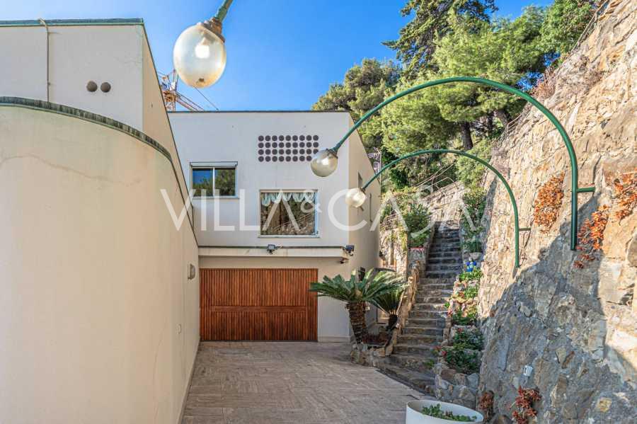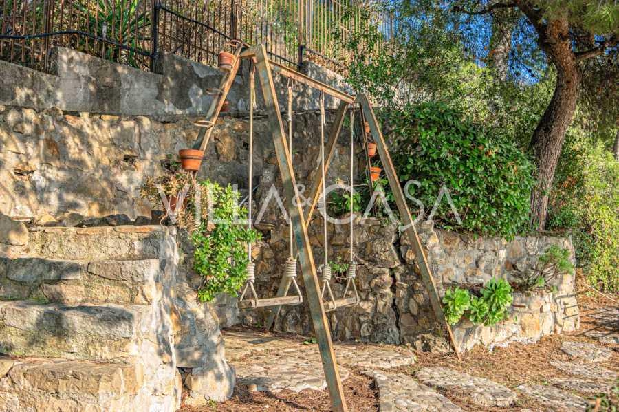 Rezidans, detaylara maksimum özen gösterilerek oluşturulmuş benzersiz bir Akdeniz bahçesi ile çevrilidir. Burada nadir ağaç ve çalı türleri yetişmekte olup, atmosferi zarif bir gölet ve bakımlı yollar tamamlamaktadır. Kolay erişim, tam mahremiyet, plajlara, parka ve şehir altyapısına yakınlık, bu villayı Ligurya kıyısının gerçek bir incisi yapmaktadır.