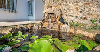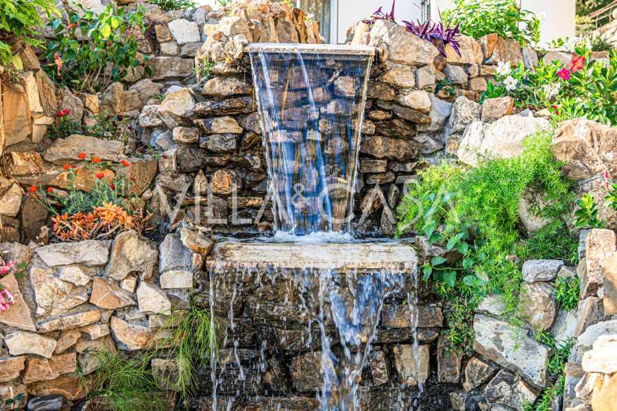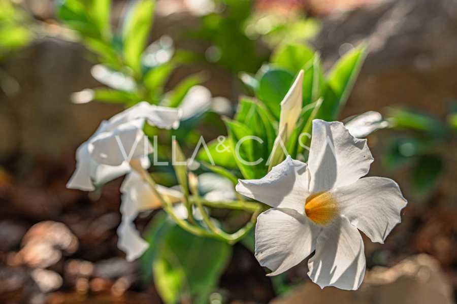 Bu zarif rezidans, 2.200 m2 büyüklüğünde özel bir parkla çevrilidir ve yeşil çimenler, nadir Akdeniz bitkileri ve büyüleyici bir gölet ile tam bir mahremiyet ve huzur atmosferi yaratmaktadır.